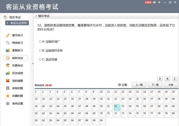 支持套题学习功能,直接将一套客运从业资格考试练习题目重做