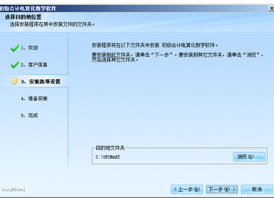 第六,计算机如果有还原卡,需将数据库和电算化软件,安装到不受还原卡保护的盘符。例如:受还原卡保护的盘符为C盘,在安装时将安装路径C:\UFSMART