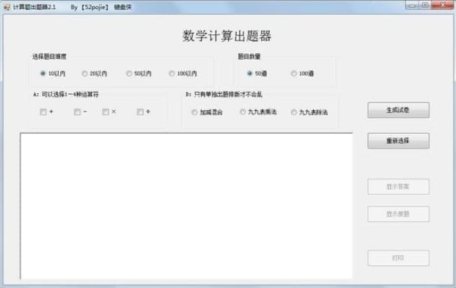 专为小学、幼儿园小朋友出数学题软件,家里小孩有做题需要的时候,软件可以生成试卷