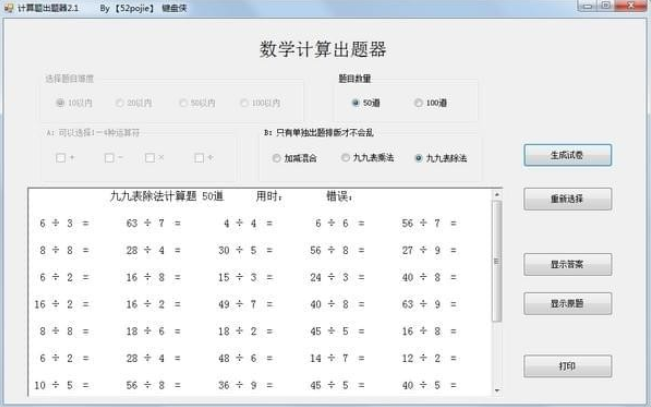3.修正了选择“九九表乘除法”时打印显示问题;