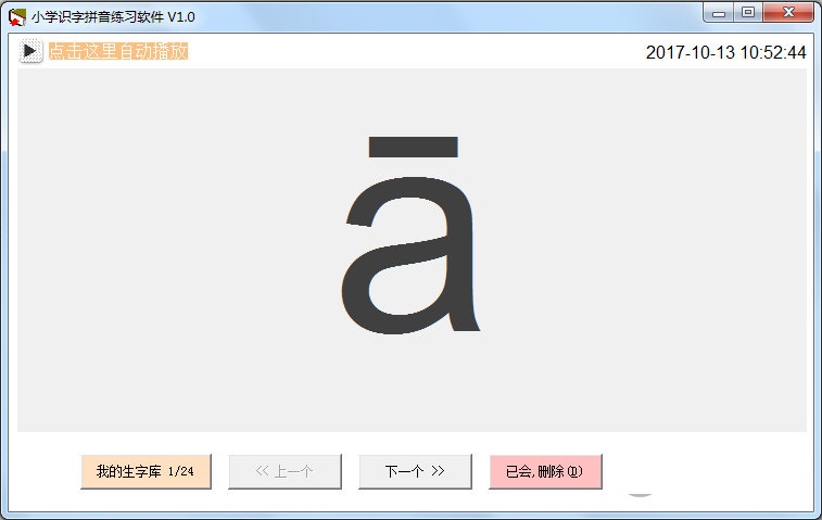 小学识字拼音练习软件官方版是一款使用非常方便的小学生识字工具。小学识字拼音练习软件官方版能方便家长去加强孩子的识字练习,而且用户还可以按软件分类进行练习,让孩子去标记自己未掌握的生字,全面提供孩子的文字语言识别能力。