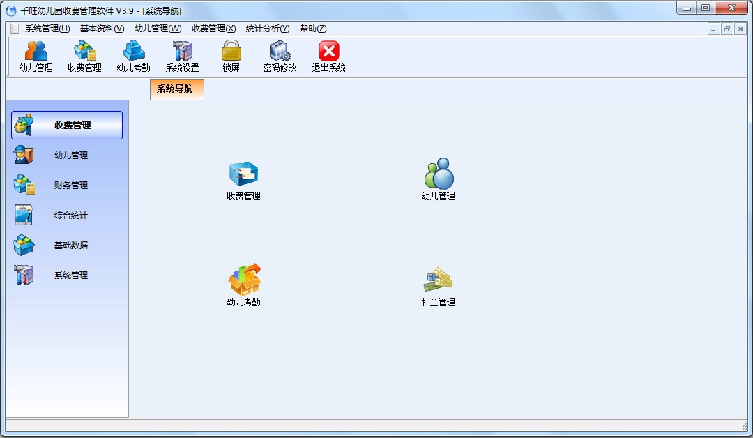 3、完善可靠的收费系统。实现“收费标准定义---费用核算---幼儿交款---月结及费用总查询”一整套管理,提高收费效率,有效加强资金的回收管理。