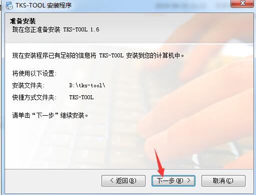2、选择安装文件夹,默认的是“D:\tks-tool\”,要选择不同的位置,可以点“更改”修改
