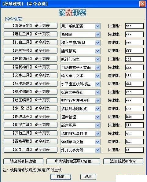 ● 通过总览命令,可以动态设置所有命令的快捷键,即时生效;
