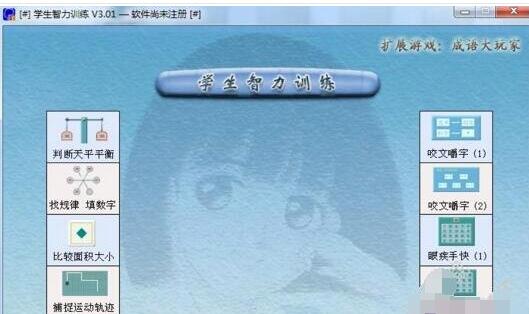 学生智力训练软件正式版是一款非常优秀的儿童智力开发的训练软件,学生智力训练软件正式版界面简洁大方,功能强劲实用,是针对智力结构中的不同侧面:注意力,记忆力,想象能力,逻辑思维能力,观察能力等,非常的方便实用。