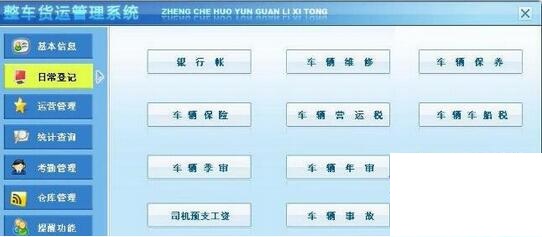 2、日常登记(银行帐、车辆维修、车辆保养、车辆保险、车辆营运税、车辆车船税、车辆季审、车辆年审、办公室费用、司机预支工资、车辆事故)