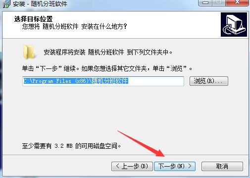3、选择目标位置,默认的是C:Program Files (x86)随机分班软件,可以点浏览修改