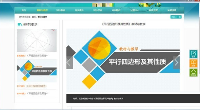 优质的教学资源是平台的核心,采用了“同步到课”“一课一网”的形式建设。“同步到课”是指教学资源与教材内容完全同步、配套;“一课一网”是持每一课都构建成一个相对独立的资源网站。平台共制作了8000个以课时或知识点为基础的独立网站。