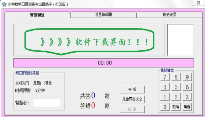 本程序既可以用键盘输入也可以用鼠标操作,很方便孩子在电脑上口算训练,如果不习惯电脑操作,也可以打印出来,在纸上训练。