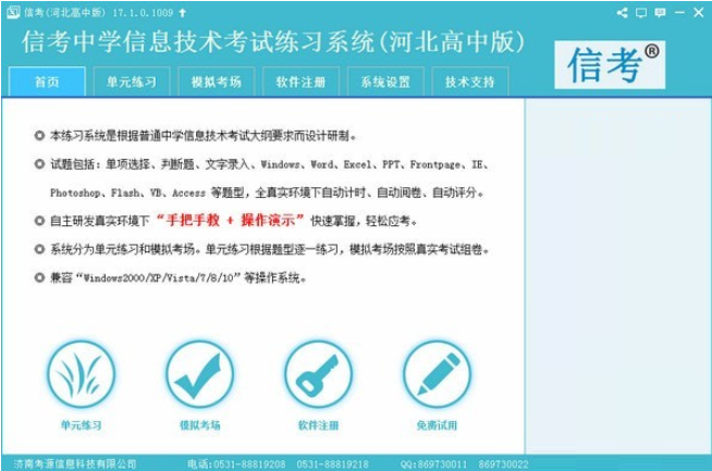 ????本信息技术考试练习系统由济南考源信息科技有限公司根据普通中学信息技术考试大纲要求而设计研发,并且自主研发了真实环境下的“手把手教+操作演示”,可使考生快速掌握考点知识,提前熟悉考试环境。信息技术考试操作题是真实上机考试,真实操作系统,系统自动评分的。软件里的模拟考场是模拟真实考试环境,可以帮助考生提前适应真实机考,轻松应考。软件注册码是25位纯数字,请注意辨别!