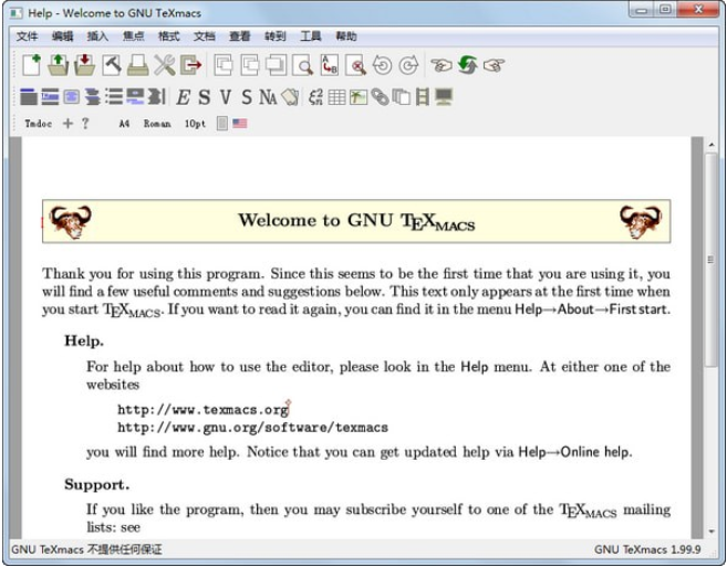 TeXmacs可以在所有主要Unix平台和Windows上运行。文档可以保存为TeXmacs、Xml或Scheme格式,并打印为Postscript或pdf文件。TeX/LaTeX和Html/Mathml都有转换器。