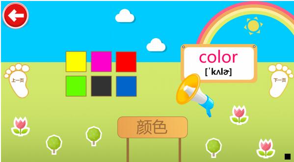 ??1、点击快乐宝宝学英语,显示软件的开始界面,点击文字
