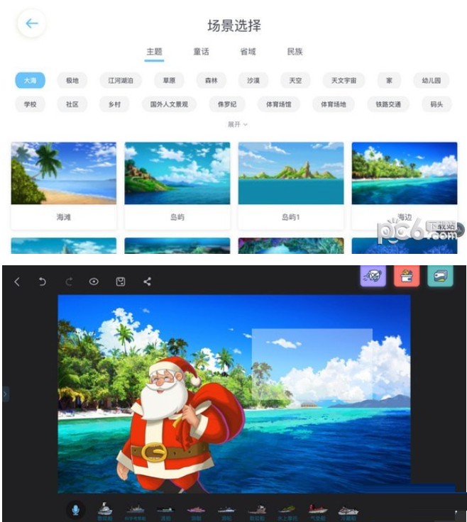 3、蓝天白云LTBY通过拖拉素材快速完成课件,降低幼师备课工作量,同时将游戏/活动/课件/绘本有机的联系在一起,全面提升幼教质量。
