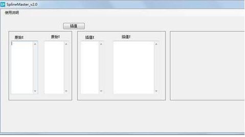 ??求解上述问题,使用本程序,在“原始x”一列中输入已知十组散点的x值,在“原始y”一列中输入已知十组散点的y值,在“插值x”一列中欲求取的散点的x值。输入完成后,点击“插值”按钮,欲求取的y值即显示在“插值y”一列中。