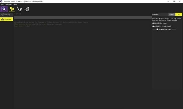 如需跟新固件,则首先断开pixhawk与电脑的连接,然后打开QGroundControl,点击齿轮,然后点击Firmware,最后通过usb线把pixhawk与电脑进行连接