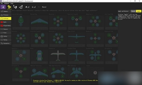 更新完固件之后,就需要对airframe进行设置了。这里我们选用通用的x构型,即generic Quadrotor x config
