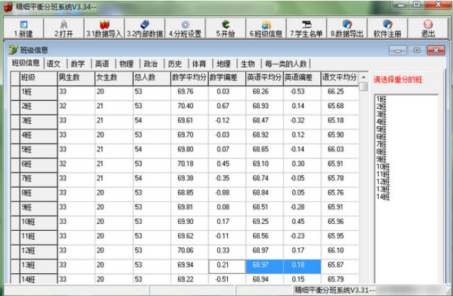 如果对分班的结果不满意,或分班后,出现一些班不均衡,可以选择一个高于平均分的班和一个低于平均分的班再进行分班,让它们重新进行均衡。