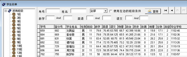 可对某个学生指定分到哪个班, 亦可对符合某些条件学生(如本地、外地生)平均分配到每个班,亦可把 100 名,200