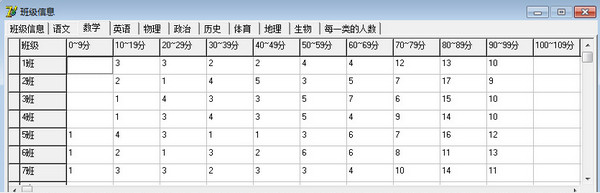 本分班软件分班的时候参考的科目共有 10 科,分别是语文、数学、英语、物理、政治、历史、体育、地理、总分。