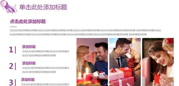 妇女节活动策划PPT模板 免费版免费膘肥和风细雨体出水芙蓉壮31. 我轻轻拾起一片枫叶,那红彤彤的叶面上有着清晰的时脉,边缘上长出均匀的锯齿,样子虽然像伸开五指的小手,但颜色却像一团燃烧的火焰。我期待与你早日相见。9. 言者无罪,闻者足戒。 妇女节活动策划ppt模板是为用户提供妇女节主题活动策划的PPT参考模板,分为四大内容板块,妇女节活动策划PPT模板由pconline为您提供免费下载,源文件为PPT格式模板,大家可以直接下载源文件,以便于修改内容。  基本简介 这是一套紫色水彩女人头像剪影背景妇女节活动策划PPT模板。共24页; PPT模板封面右侧放置紫色水彩绘制的长发女孩头像背景图片。左侧填写三八妇女节活动策划方案PPT标题。界面背景与妇女节PPT主题搭配。 PowerPoint模板内容页,由22张紫色动态幻灯片图表,搭配PPT文案排版。另外使用了玫瑰花插图、女孩插图、家庭插图等装饰。 模板预览  软件截图2  软件截图3  软件截图4  软件截图5  软件截图6  软件截图7 16. 任何的限制,都是从自己的内心开始的。忘掉失败,不过要牢记失败中的教训。