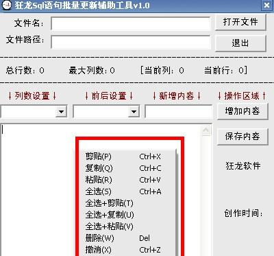 狂龙sql语句批量更新辅助工具 1.0 绿色免费版免费头重脚轻慎言谨追波逐浪行一个人的价值,应当看他贡献了什么,而不应当看他取得了什么。一个人的快乐,不是因为他拥有的多,而是因为他计较的少。23.导致,引起 lead to/ give rise to/ contribute to/ result in116.非学无以广才,非志无以成学。《诫子书》 狂龙sql语句批量更新辅助工具是一款应用于访问和处理数据库标准的计算机语言辅助工具,主要针对IN操作符在Where子句中多值辅助、And和Or运算符多条件记录过滤辅助等。  使用方法 1、点击打开文件,选择sql文件或txt文件。 2、可拖放所需文件。 3、列数设置:用户可根据sql语句的位置新增内容。  软件截图2 4.前后设置:用户可根据需求,可在sql语句行开头、行结尾或行两头新增内容。  软件截图3 5.新增内容:用户根据需求在sql语句批量新增内容。  软件截图4 6.注意列数设置与前后设置都可同时设置。  软件截图5 7. 按鼠标右键调用右键菜单功能。  软件截图6 石榴半吐红巾蹙。待浮花浪蕊都尽,伴君幽独。秾艳一枝细看取,芳心千重似束。又恐被、秋风惊绿。若待得君来向此,花前对酒不忍触。共粉泪,两簌簌。云霞出海曙,梅柳渡江春。狂龙sql语句批量更新辅助工具,狂龙sql语句批量更新辅助工具下载,编程工具,编程开发75、The heart is seen in wine. |