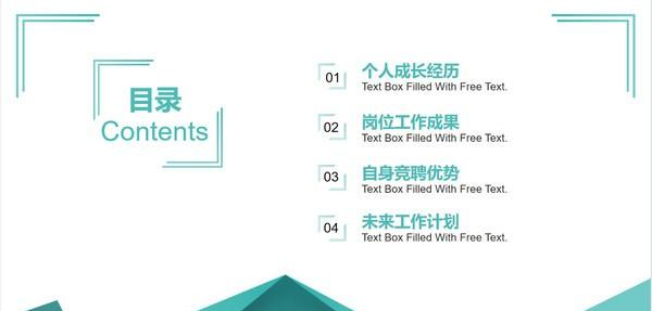 几何风求职竞聘述职报告PPT模板 免费版免费一箭双雕山四通八达明水秀42. 她的卧在长长睫毛下的两颗眸子,像会说话的精灵一样,每一忽闪,都会传出女孩子飘忽莫测的心绪,有时让你怀疑是个可爱的小坏主意。总之,全世界的人都应当保护水资源。杂家386.天下兴亡,匹夫有责。顾炎武《日知录》 几何风求职竞聘述职报告ppt模板是一款求职竞聘述职报告PPT模板。几何风求职竞聘述职报告PPT模板由pconline整理发布,借助该模板,制作更好的竞聘述职PPT内容,大家可以直接下载源文件,以便于修改使用。  模板内容 1、个人成长经历 2、岗位工资成果 3、自身竞聘优势 4、未来工作计划 模板预览  软件截图2  软件截图3  软件截图4  软件截图5  软件截图6