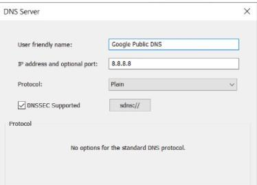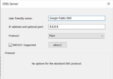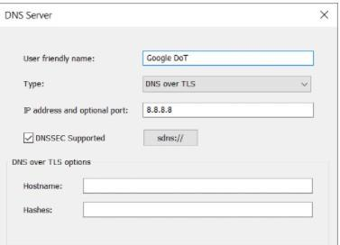 | 介绍 | YogaDNS(DNS安全工具) 1.27 官方版免费手炯炯有神崎岖不平足情深34. 如果黑板就是浩淼的大海,那么,老师便是海上的水手。铃声响起那刻,你用教职工鞭作浆,划动那船只般泊在港口的课本。课桌上,那难题堆放,犹如暗礁一样布列,你手势生动如一只飞翔的鸟,在讲台上挥一条优美弧线——船只穿过……天空飘不来一片云,犹如你亮堂堂的心,一派高远。更糟糕的是,一些司机不认为遵守交通规则是极为重要的。400.天若有情天亦老,人间正道是沧桑。《七律?人民解放军占领南京》 YogaDNS(DNS安全工具)是最先进的DNS客户端,能够用于拦截DNS请求,允许用户使用现代协议解析主机。软件内置了NextDNS的支持,用户无需在多个地方更改任何现有的DNS设置,在系统级别捕获DNS请求,并根据配置和规则对其进行处理。 ![]() 功能介绍 1、系统级集成 自动拦截来自系统解析器和应用程序的所有请求 无需手动更改DNS配置 2、协议 普通、HTTPS和TLS上的DNS、DNSCrypt和匿名DNS 具有本地验证的DNSSEC IPv4和IPv6 3、灵活的规则 定义多个DNS服务器并根据主机名掩码和主机文件通过它们进行解析 指定用于解析的网络接口(以太网、Wi-Fi等) 4、增强的DNS安全性 通过DNS over HTTPS、DNS over TLS、DNSCrypt、NextDNS和匿名DNS协议提供的加密通道上的名称解析 确保与DNSSEC解析的一致性和权威性 避免DNS泄漏 5、DNS服务器管理 使用灵活的规则为特定DNS名称分配特定DNS服务器 对特定的DNS名称(例如*.corp.example.net)使用特定的网络接口 用于故障排除的日志查询 6、新技术和部署 轻松使任何系统使用最先进的DNS协议,例如DNSSEC、DNSCrypt和DNS over HTTPS 自动从网络导入和检查公共DNS服务器 导入和导出配置文件 使用方法 快速开始 当您第一次以空配置启动 YogaDNS 时,它会显示首次启动向导窗口,您可以在其中从许多预定义的方案中进行选择。您可以随时运行此向导 配置->首次启动向导. 通常,当您启动 YogaDNS 时,它会在后台运行并将其图标添加到系统托盘中。(如果您没有看到 YogaDNS 图标,请单击系统托盘左侧的箭头状图标。) 要打开主窗口,请左键单击该图标。通过右键单击,您可以快速访问DNS 服务器或规则或 出口 该程序。 如果 YogaDNS 中没有 DNS 服务器或规则,则所有 DNS 查询都会被绕过。不过,您应该会在日志窗口中看到它们,如下所示: [10.31 15:53:16] google.com - 绕过:规则=默认 [10.31 15:56:14] www.google.com - 绕过:规则=默认 [10.31 15:56:14] ssl.gstatic.com - 绕过:规则=默认 此时,您可以使用规则管理 DNS 解析。可以通过选定的网络接口阻止某些域或强制解析(将使用默认 DNS 服务器)。 添加特定的 DNS服务器, 打开 配置->DNS 服务器 通过菜单或工具栏图标,然后单击 添加... 您可以手动输入服务器详细信息或从 DNS Stamps ( sdns://)。以下是使用 Google 公共 DNS 的示例。 ![]() 软件截图2 添加一个后 DNS服务器,您需要将其分配给 规则. 为此,打开 配置->规则通过菜单或工具栏图标。您可以通过双击或单击来使用持久性默认规则 编辑...,或者您可以通过单击创建一个新的 添加...该默认如果没有其他规则匹配的决心请求规则将被执行。 您可以选择Action和DNS Server。的一个例子的默认规则如下所示。 ![]() 软件截图3 可以创建多个规则来通过选定的 DNS 服务器解析某些主机名。当 YogaDNS 通过 DNS 服务器处理解析时,您应该会看到如下日志消息(将Screen Log设置为Verbose或Debug以获得更多输出): [10.31 17:08:51] iana.org - 请求:类型=A,服务器=10.0.0.1:53,程序=nslookup.exe [10.31 17:08:51] iana.org - 进程:服务器=谷歌公共 DNS(Plain,8.8.8.8),规则=默认 [10.31 17:08:51] iana.org - 回复:type=A,ips=192.0.43.8 [10.31 17:08:51] iana.org - 请求:类型=AAAA,服务器=10.0.0.1:53,程序=nslookup.exe [10.31 17:08:51] iana.org - 进程:服务器=谷歌公共 DNS(Plain,8.8.8.8),规则=默认 [10.31 17:08:51] iana.org - 回复:类型=AAAA,ips=2001:500:88:2009. 我的梦想是当绘画老师。因为我太喜欢绘画和做手工啦!::8 您现在可以关闭 YogaDNS 的主窗口,因为它会在系统托盘中最小化时继续运行。要使 YogaDNS 在 Windows 启动(用户登录)时自动启动,请启用 文件->自动启动. 2、主窗口 要打开主窗口,请单击系统托盘或任务栏上的YogaDNS图标。该窗口有一个菜单、一个工具栏和日志输出, 工具栏的元素对应于菜单命令。您可以管理DNS服务器和规则,通过单击清除屏幕日志清晰显示并设置详细级别屏幕日志和文件日志. 当您关闭主窗口时,YogaDNS在系统托盘中最小化的同时继续运行。您可以通过以下方式更改此行为窗口->系统托盘中的图标.禁用此选项后,YogaDNS将在您关闭主窗口时退出。 3、DNS服务器 要管理YogaDNS使用的DNS服务器列表,请打开配置->DNS服务器通过菜单或工具栏图标。默认情况下,列表为空 您可以使用添加...,编辑...和消除按钮来添加、编辑或删除DNS服务器。从Web使用导入公共DNS服务器从网上获取...按钮。和查看按钮,您可以检查选定的服务器或服务器。单击列标题以相应地对列表进行排序。 这服务器池按钮打开一个子窗口,您可以在其中通过从列表中拖动它们来创建DNS服务器池。 添加或编辑DNS服务器时,将显示以下窗口。 ![]() 软件截图4 可用参数取决于所选协议。上面的例子是谷歌公共DNS(普通协议)。 这用户友好名称是用户设置的任意名称,用于在程序的其他部分(包括规则和日志)中引用此服务器。 这IP地址和可选端口字段用于设置DNS服
