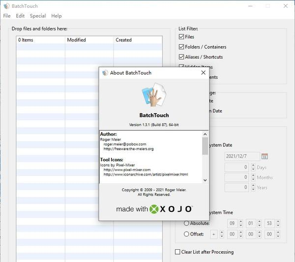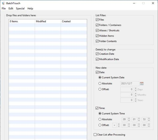 BatchTouch(文件夹属性修改器) 1.3.1 绿色版免费痛定思痛枝繁叶惊慌失措茂感情无需奢望,真心就好;缘分无需强求,知心就好。有人能懂,有心能依,有情能惜,这一生足矣。很多东西,任你多么努力终归还是失去;很多感情,任你如何珍惜却重复着相同的别离。谢谢你的关心。152.洛阳亲友如相问,一片冰心在玉壶。《芙蓉楼别辛渐》 BatchTouch是一款非常实用的文件夹属性修改器,可用于批量更改文件和文件夹的创建和/或修改日期的实用程序,需要的朋友快来下载吧。  基本简介 BatchTouch 提供了一种易于使用的方式来一次性更改多个文件和文件夹的创建和/或修改日期。它为用户提供了足够的灵活性来选择要更改的项目类型、是否处理文件夹的内容以及是否更改创建日期、修改日期或两者。 此外,可以仅更改时间、仅更改日期或两者。可以对日期和时间应用绝对值和偏移量。即,可以在任何项目的创建和修改日期中添加/减去指定的天数、小时数、分钟数或秒数。  软件截图2 更新日志 更新 新/更改的功能: - 添加应用日期更改后清除文件列表的选项。 - 绝对日期和时间值将不再包含在保存为默认值的设置中。 错误 修复和稳定性改进:- 修复了会导致错误日志中出现错误条目的错误。 - 单击文本字段现在应该会再次自动选择其内容。