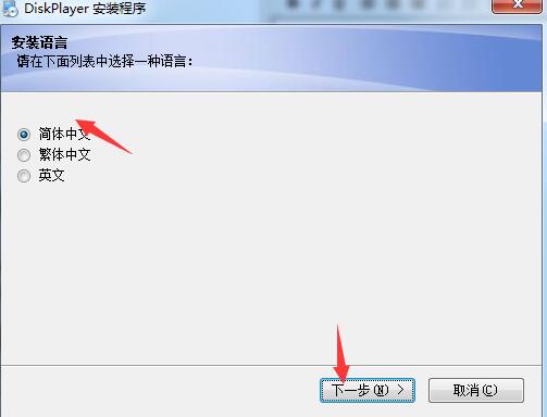 1、在本站下载DiskPlayer最新版,运行安装文件,选择安装语言,默认简体中文