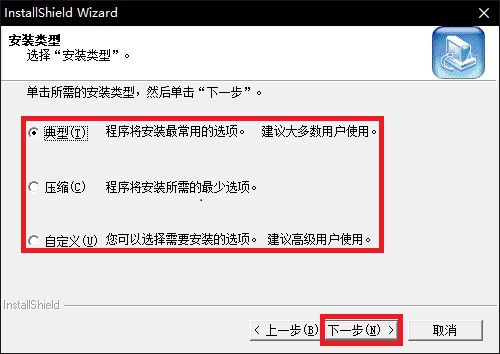 6、安装类型共有三种选择,如无特殊需求建议选择典型