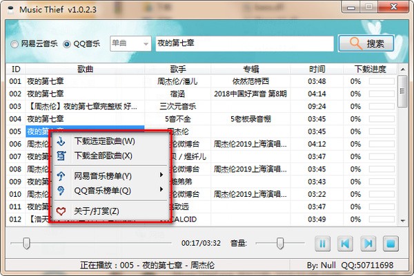 4、软件界面鼠标右键下载指定歌曲,任务栏托盘图标右键下载音乐功能下载当前播放音乐。