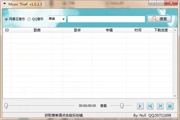 2、软件打开为空白,可进行搜索或点击鼠标右键快捷获取某音乐各排行榜榜单