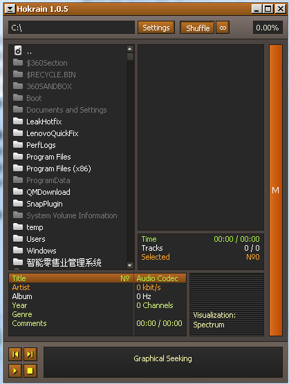 Hokrain汉化版是一款功能专业的音乐播放器;它非常的小巧,而且方面也相当的灵活,操作简单,让您快速的即可进行音乐的播放;而且还十分的人性化,让您的音乐播放得到最大层度的利用。