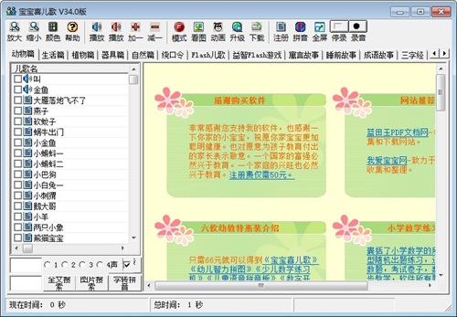 3.几百首flash儿歌丰富的颜色和悦耳的音乐对开发孩子的大脑有非常大的帮助;