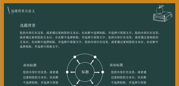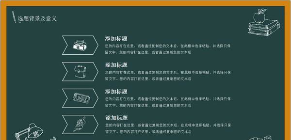 创意黑板论文答辩PPT模板 免费版免费千军千军万马万谈笑风生马绿了春色,黄了秋色,心路一向延伸,无尽无休,拘囵的身心静静开放着玫瑰,装扮寂寞的殿堂。20. People who spend more time with their families are usually healthier and happier.213.人世几回伤往事,山形依旧枕寒流。《西塞山怀古》 创意黑板论文答辩ppt模板是一个论文答辩PPT模板。创意黑板论文答辩PPT模板由pconline为您整理发布,帮助大家更好的制定个人的论文答辩PPT,大家可以直接下载源文件,以便于编辑修改使用。  模板内容 1、课题综述 2、目前现状 3、研究目标 4、研究过程 5、研究结论 6、参考文献 模板预览  软件截图2  软件截图3  软件截图4  软件截图5  软件截图存十一于千百拼音:cún shí yī yú qiān bǎi释义:指亡多而存少。出处:语出晋·陆机《叹逝赋》顾旧要于遗存,得十一于千百。”示例:而今学者尚知宗孔氏、崇仁义、贵王贱霸而已,其大经大法皆亡灭而不救、坏烂而不收,所谓~,安在其能廓如也!★唐·韩愈《与孟尚书书》6 清平乐 赵令畤开轩面场圃,把酒话桑麻。创意黑板论文答辩PPT模板,创意黑板论文答辩PPT模板下载,文本处理,应用工具25、Time tries all things. |