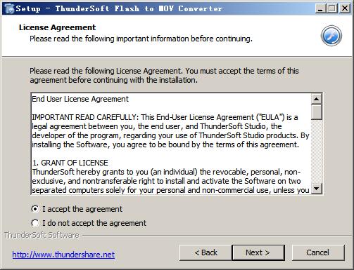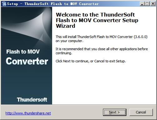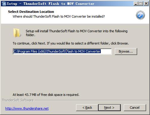 3、继续next选择软件安装目录,默认为“C:\Program Files (x86)\ThunderSoft\Flash to MOV Converter”