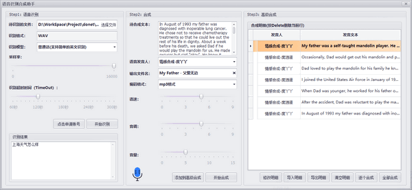 语音识别合成助手正式版是一款简单小巧实用的语音识别并一键合成助手,软件界面简洁大方,功能全面,操作简单。语音识别合成助手正式版可以帮助用户在日常生活中遇到了需要语音识别的内容,都可以使用这款语音识别合成助手进行一键合成识别。