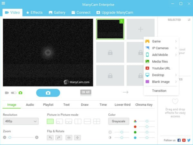 ??ManyCam Enterprise可以自动的对摄像头添加上一些滤镜或者美化的功能。ManyCam Enterprise可以添加生动地 CGI