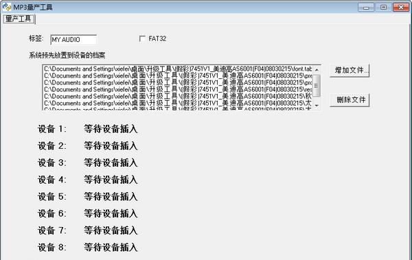MP3量产工具 2.0 免费版免费雪一日千大言不惭里上加霜64. 尘世是复杂的,个性是在生存激烈的今日,为了生存,人们往往疲于奔命,由此暗淡了笑容。其实我们大可不必如此,我们要坦诚地对待生活,绽放笑颜,更会成就事业,成就自己,取得更骄人的成绩。在校园内,学生拥有手机的趋势在不断增长。62.合抱之木,生于毫末;九成之台,起于垒土;千里之行,始于足下。 MP3量产工具是冠派MP3的官方量产工具,虽然现在使用MP3的人很少了,尤其是冠派MP3更加的稀少,但是如果手上有冠派车载MP3的话,利用这个量产工具能够进行简单的修复和升级,有需要的可以下载使用。  功能介绍 修复量产goldpy(冠派)xy8103~xy8106车载MP3。 使用方法 1.装升级工具.rar文件解压缩到卓面 2.打开升级文件夹,双击运行fsblink20.exe 3.进入MP3量产工具界面,将原有的文件删除掉后(因原文件路径不同,会找不到升级文件),再选择增加文件,选择升级工具文件夹里的”MP3升级程序”里的所有文件后选择打开退出. 4.插入待升级的车载MP3,等待完成升级. 5.完成后,要退出此升级工具才可对车载MP3进行拷歌的操作(要不然会当成要进行程序升级而进行升级工作) 注:升级完及拷完歌后要用安全退出的方式进行退出!因为车载MP3不能指示是否与电脑无数据通信,如还与电脑有数据的传输面拔出机器很容易造成MP3中的程序出错从而出来掉程序的故障! 内附固件升级工具软件和板号为MP3-7261V5-PCB的固件。 接上电脑,用ChipGenius检测芯片为 goldpy 冠派) xy8103~ xy8106 首先将MP3与电脑断开, 运行固件升级工具软件中的 Fusblink20.exe 点 "增加文件" 按钮 在标签那里可以任意填. FAT32那里可以选也可以不选. 选中固件压缩包中解压出来的四个文件, 把MP3连接上电脑, 电脑检测到后会自动进行升级, 升级会自动完成,完成后可以看到MP3里面已被拷入四个固件文件. 如果升级不成功,可以试试连接电脑前先将Flash的29,30脚短路,然后再插上UBS连接线,待电脑检测到设备后再放开. 成功后先断开MP3与电脑的USB连接线,过几秒后再接上, 这时MP3才进行升级, 稍等片刻即升级完成,此时MP3的显示屏会看到USB几个字符在轮38. 如果你重内心,就修炼就旅游就一路向南向北向天涯。如果你重知识,就读书出国着书立传。能救你脱出苦海的只有你自己。让自己变得更好,才是唯一的出路。流显示,这时才算升级成功. 此时可以打开MP3,往里面拷文件了. 虞美人 晏几道夕阳无限好,只是近黄昏。MP3量产工具,MP3量产工具下载,其它工具,应用工具66、Fact is stranger than fiction. |