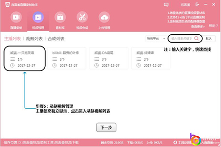 在视频管理界面,可对录制的主播视频进行查找和管理。