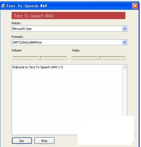 在软件的文本框中输入你需要转换成语音的文本,然后点击「Say」开始进行阅读!如果需要保存成语音,点击「Save to wave file」即可!