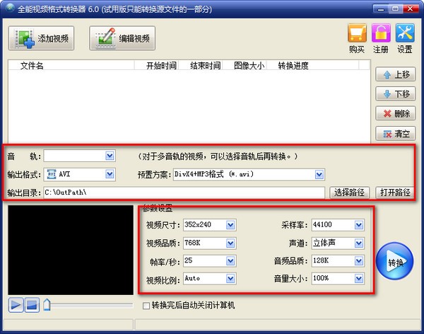 全能视频格式转换器软件界面直观,根据广大用户操作使用习惯,使用鼠标在软件窗口中点击几下,就可以完成格式转换,电脑新手也可以轻松掌握