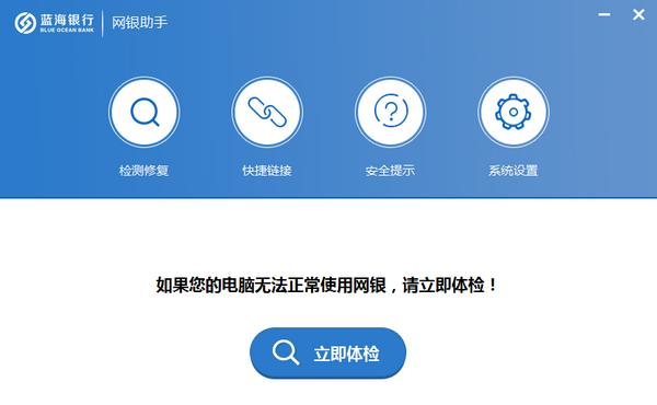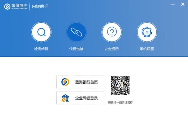 蓝海银行网银助手 正式版免费万物初醒门庭肝胆相照若市35. 几年前,我在山里说过的一句话容许我再说一遍,作为终响:“树在。山在。大地在。岁月在。我在。你还要怎样更好的世界?”74. I\'m easy to get along with and I like to make friends.(2011.辽宁)欧阳修278.忧劳可以兴国,逸豫可以亡身,自然之理也。《伶官传序》 蓝海银行网银助手是一款为蓝海银行网上银行用户提供服务的安全辅助工具,用户可以下载蓝海银行网银助手来检测修复自己的网银登录环境,另外蓝海银行网银助11. 我去当矿工,去挖钻石,然后挖出来的都归我。手还提供企业网银快捷登录入口。  基本简介 蓝海银行网银助手是上海银行官方的网银向导工具,蓝海银行网银助手可以帮助用户全面检测网银安全环境并且进行修复,帮助用户安全快速的登录蓝海银行网上银行。  软件截图2 功能介绍 1.检测修复 网银环境设置检测、系统环境检测、浏览器设置检测,修复各种证书控件 2.快捷链接 提供蓝海银行首页、企业网上银行的快捷入口  软件截图3 3.安全提示 用户登录网上银行的安全提示 4.系统设置 升级设置、开机时自动运行、关闭时最小化到托盘 庆宫春 姜夔又向人家啄大屋,屋底达官走避胡。蓝海银行网银助手,蓝海银行网银助手下载,系统安全,病毒安全64、The older the wiser. |