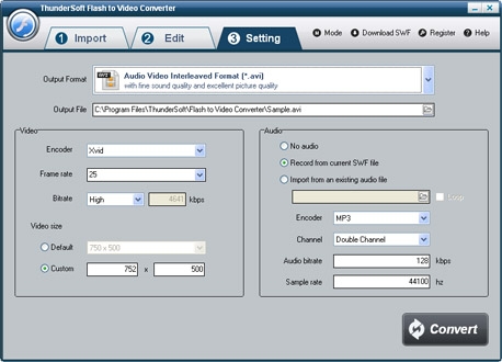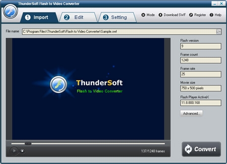 在“导入”页面上,单击浏览器按钮以添加swf文件。您可以获取有关此文件的闪存信息,并在转换之前对其进行预览。