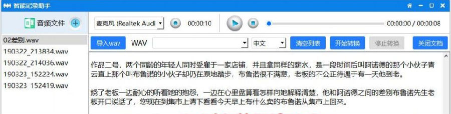 6. 点击开始转换可以将音频转成文字。本版软件一次支持批量音频文件的转换。