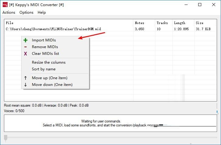 1、安装后,打开Keppy's MIDI Converter,添加需要转换的midi文件