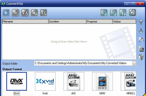 ConvertVid可以将视频转换流行的视频格式。转换AVI , MP4 ,FLV , DivX。转换为FLV,DivX ,XVID , AVI,