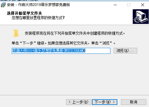 5、点击下一步,选择开始菜单文件夹
