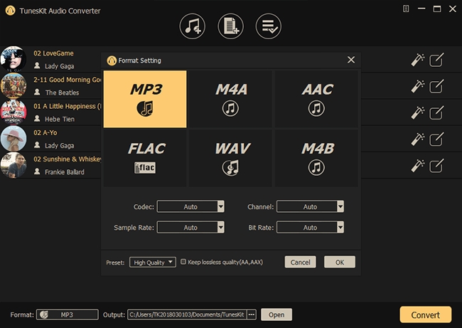 2、将DRM锁定的Apple Music M4P转换为MP3,AAC,WAV,M4A,M4B和FLAC