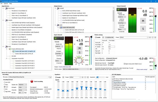 ASIO通道对从根设备接收音频数据,因此在根设备上设置任何效果(如音量或均衡器,VST DSP)将影响所有通道对。请注意,大多数VST